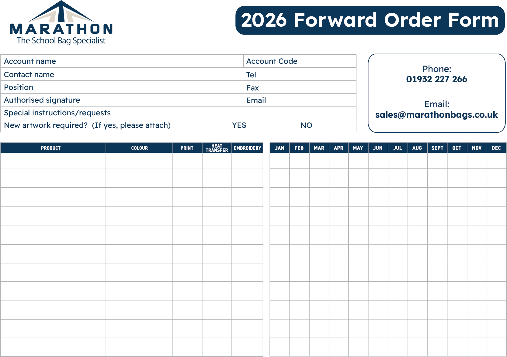 If you require any further information, help with placing your Forward Order or a review of your bag requirements for next year, please contact our sales team on 01932 227 266 and we will be happy to assist. Orders can be placed by phone, email or post.